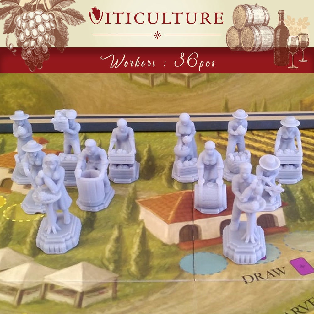 This set of READY-TO-PLAY Viticulture Essential Edition Workers, Buildings and Tokens are the ULTIMATE upgrade for this classic grape-cultivation game from Stonemaier Games and includes 108 high resolution models.