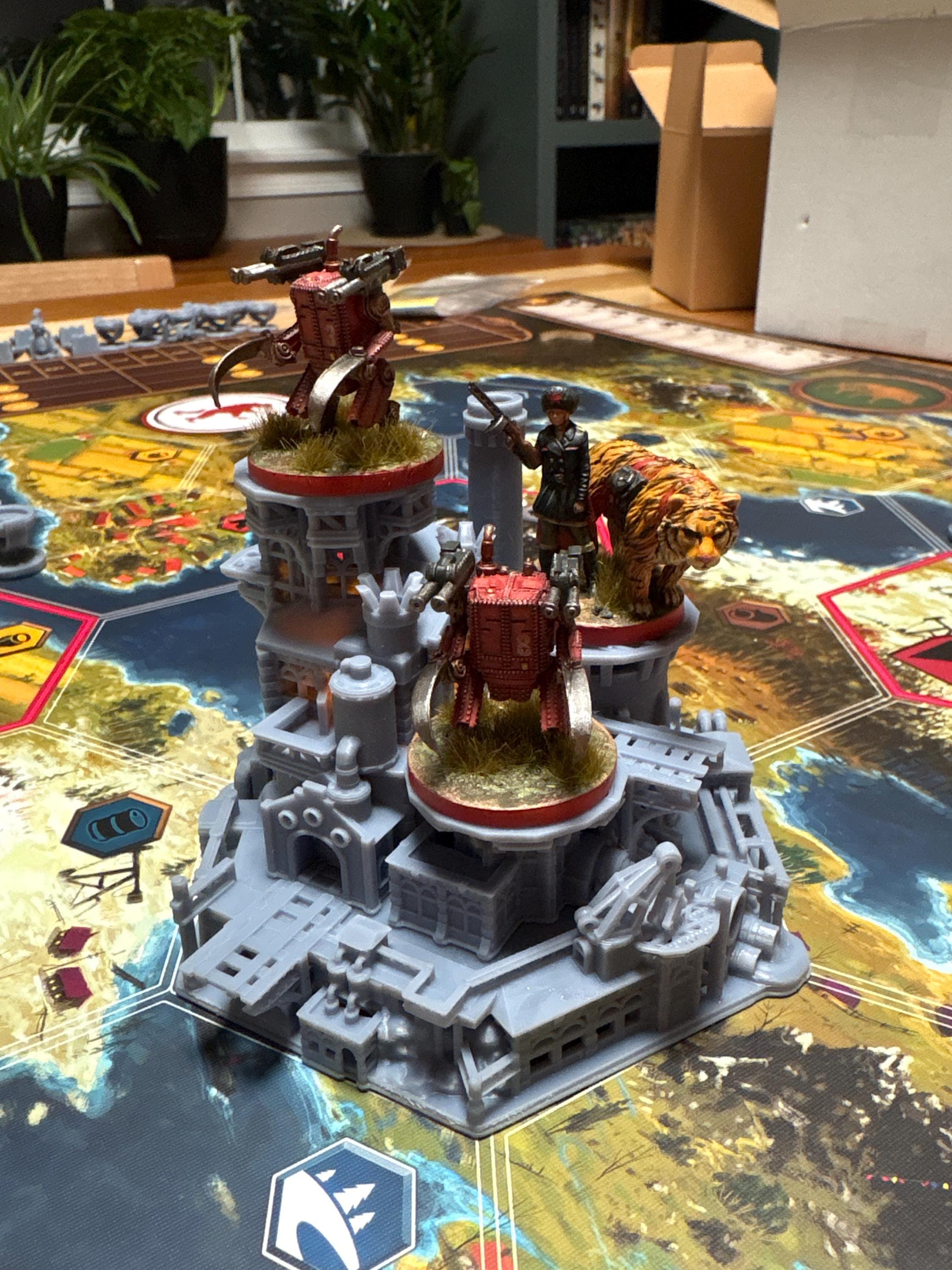 This highly detailed large scale model, which is designed to be placed in the centre of the Scythe (small) board and can hold 3 faction meeples, is printed in high-resolution grey resin for the best detailed model we can create!