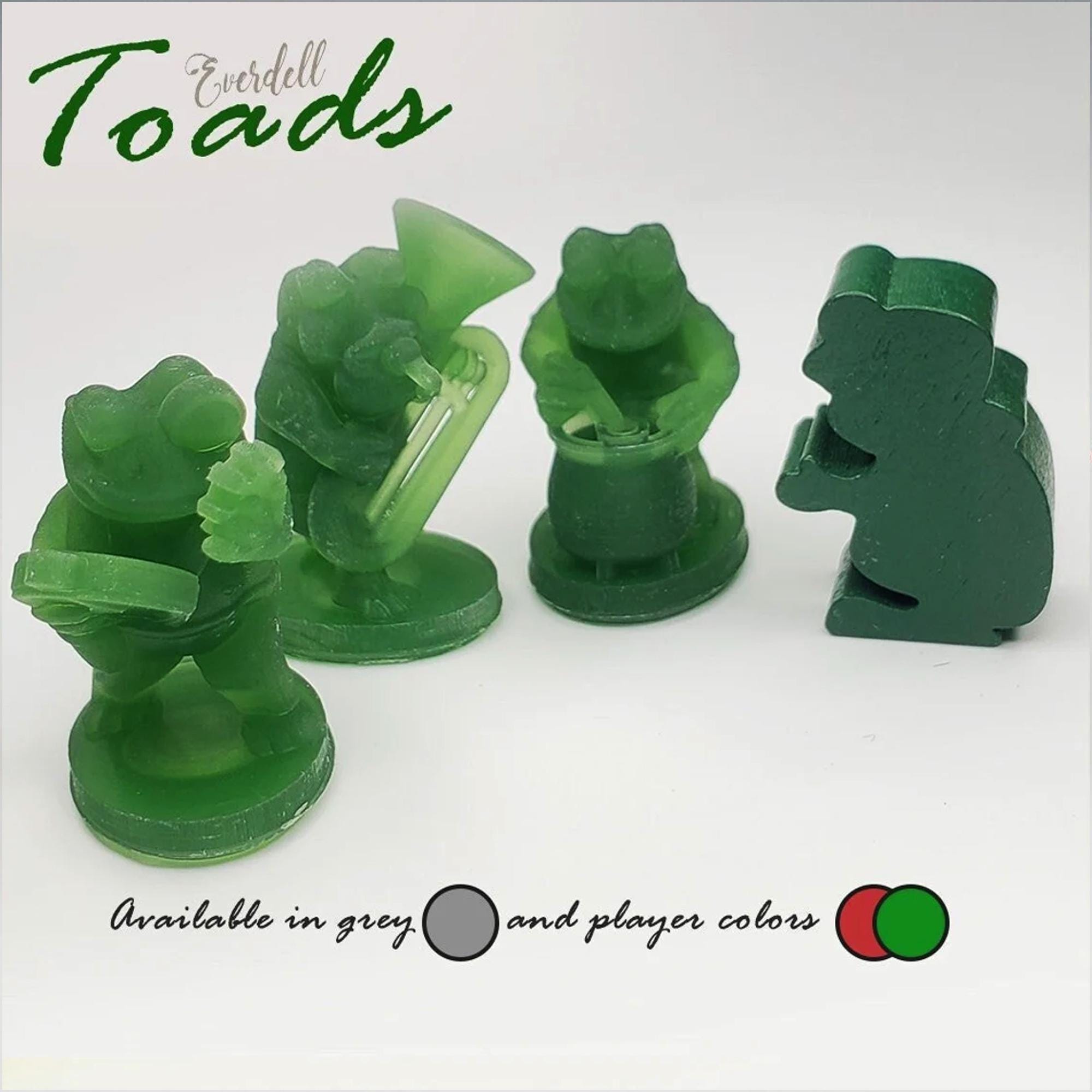 These SUPER CUTE Toads for Everdell are everything you need to enhance the game and includes 7 unique models available in grey (ideal for painting) or green, which matches the base color of the original game pieces - CHOOSE in OPTIONS which you would prefer!