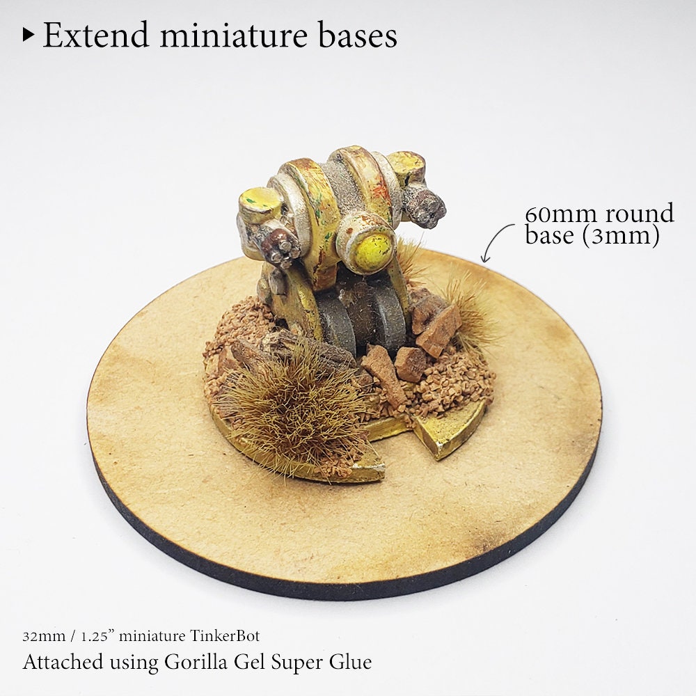 All bases are made from MDF (Medium Density Fiberboard) - which makes them strong and incredibly easy to paint, glue, base and finish. You can use virtually any paints or glues on these bases, as almost anything will adhere to the surface.