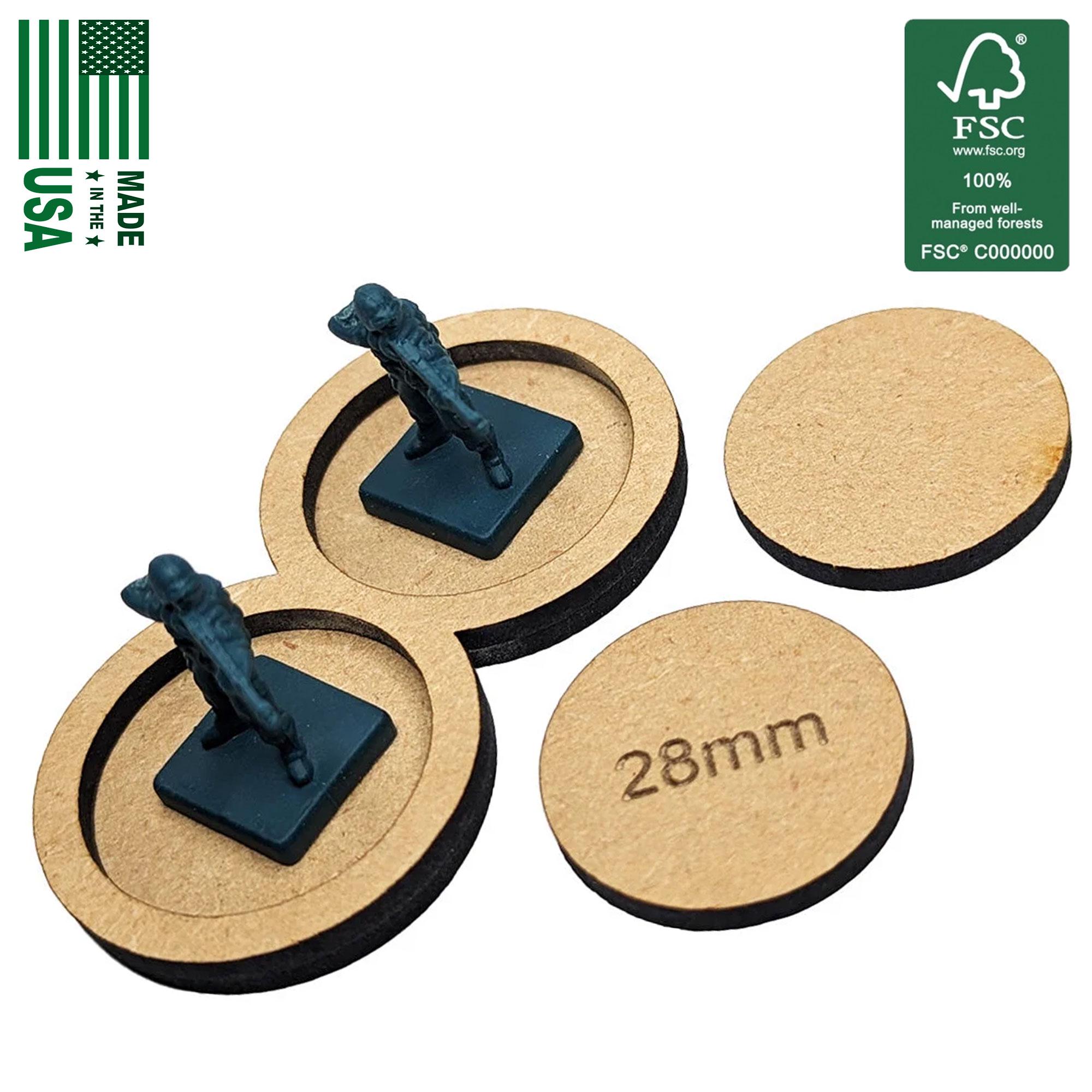This TWO Unit MDF movement tray is designed to hold TWO 28mm round bases with rounded ends and are ideal for miniatures, war or board gaming.