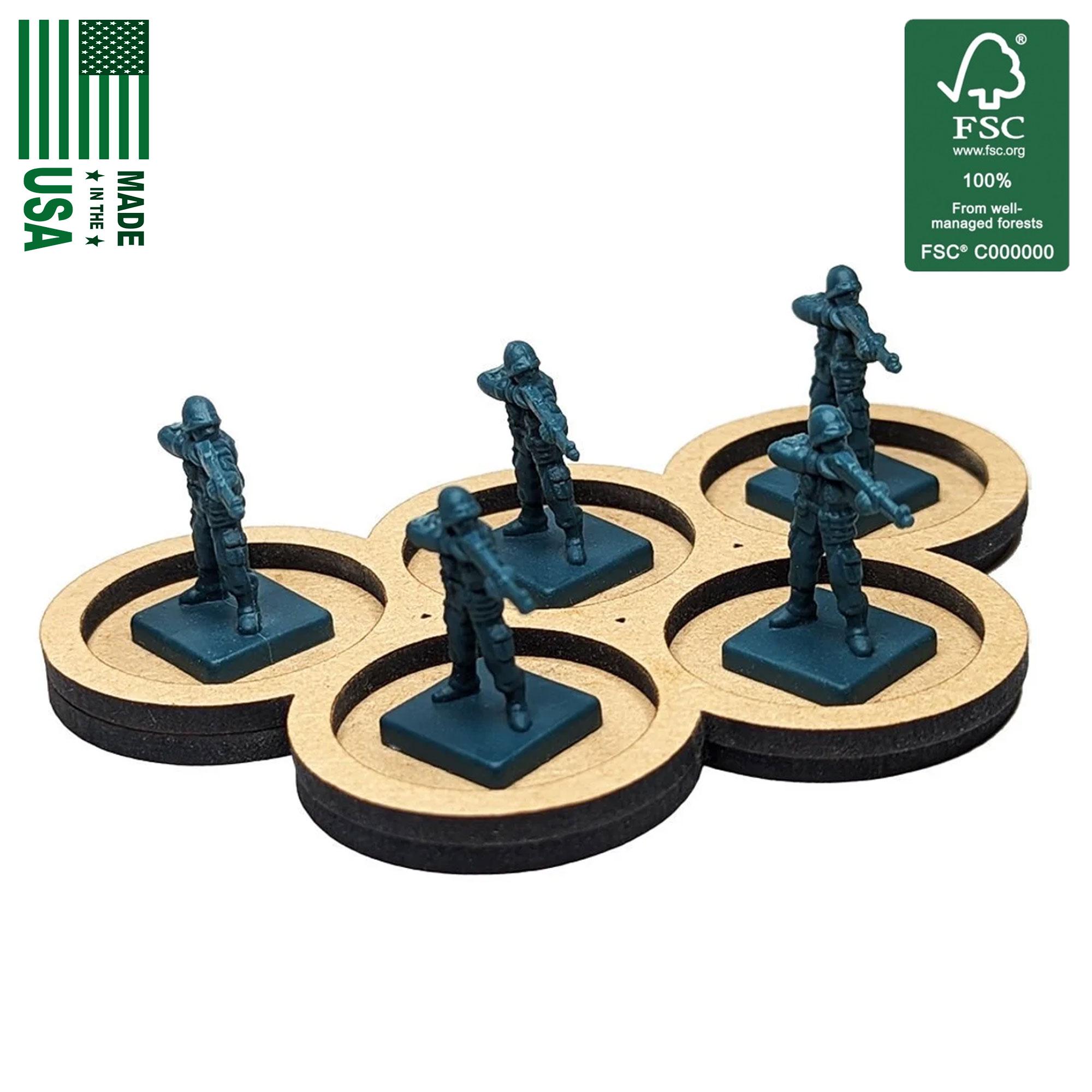 ONE movement tray incudes FIVE 28mm pill bases - use these to base your units, or simply place your units directly on the movement tray.