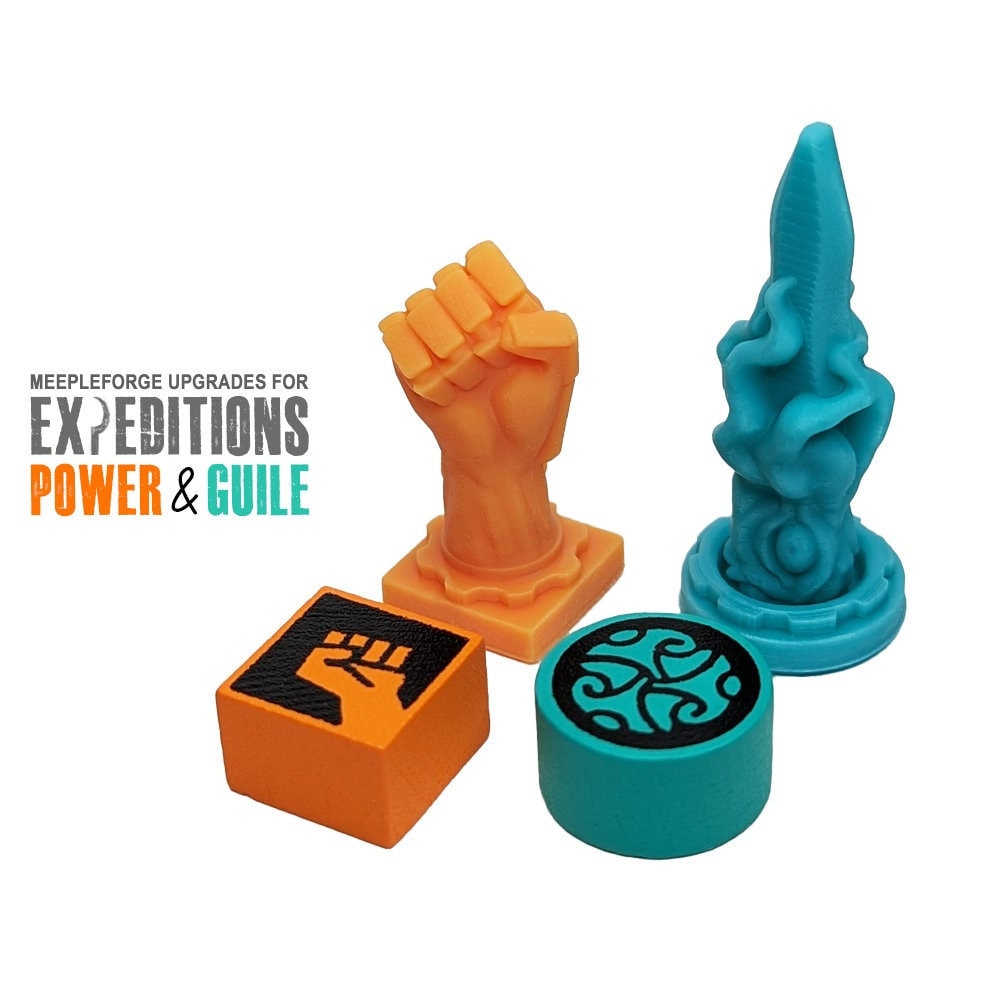 Upgrade your Scythe Expeditions and Expeditions Gears of Corruption Expansion board game experience with this set of high resolution 3D printed Power and Guile Tokens.