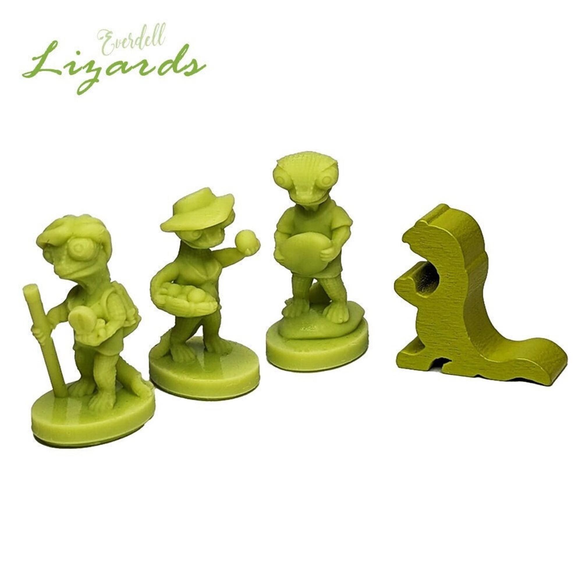 These Lizards for the Everdell Spirecrest expansion are everything you need to enhance the game and includes 6 unique models available in GREY (ideal for painting) or LIGHT GREEN, which matches the color of the original game pieces - CHOOSE in OPTIONS which you would prefer!