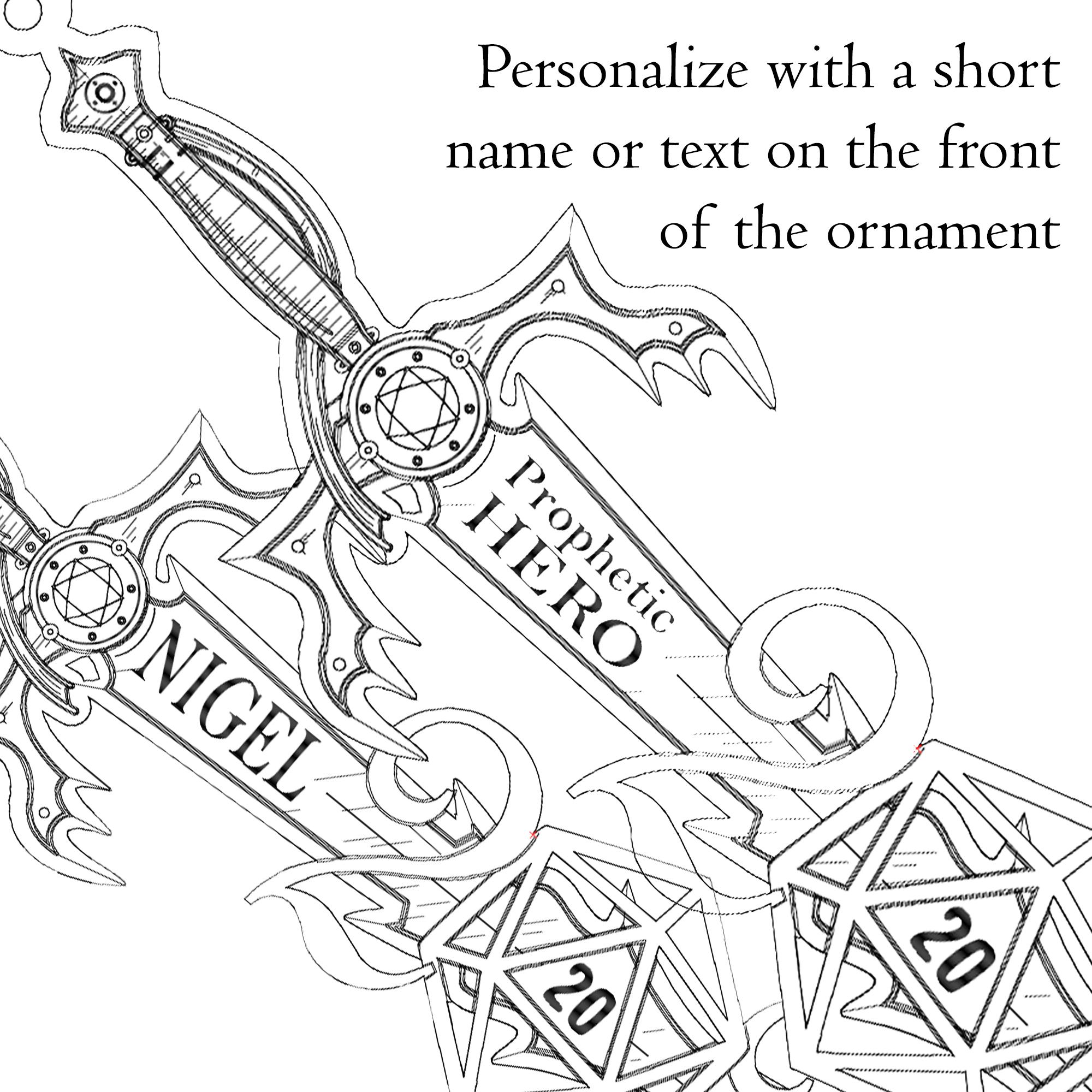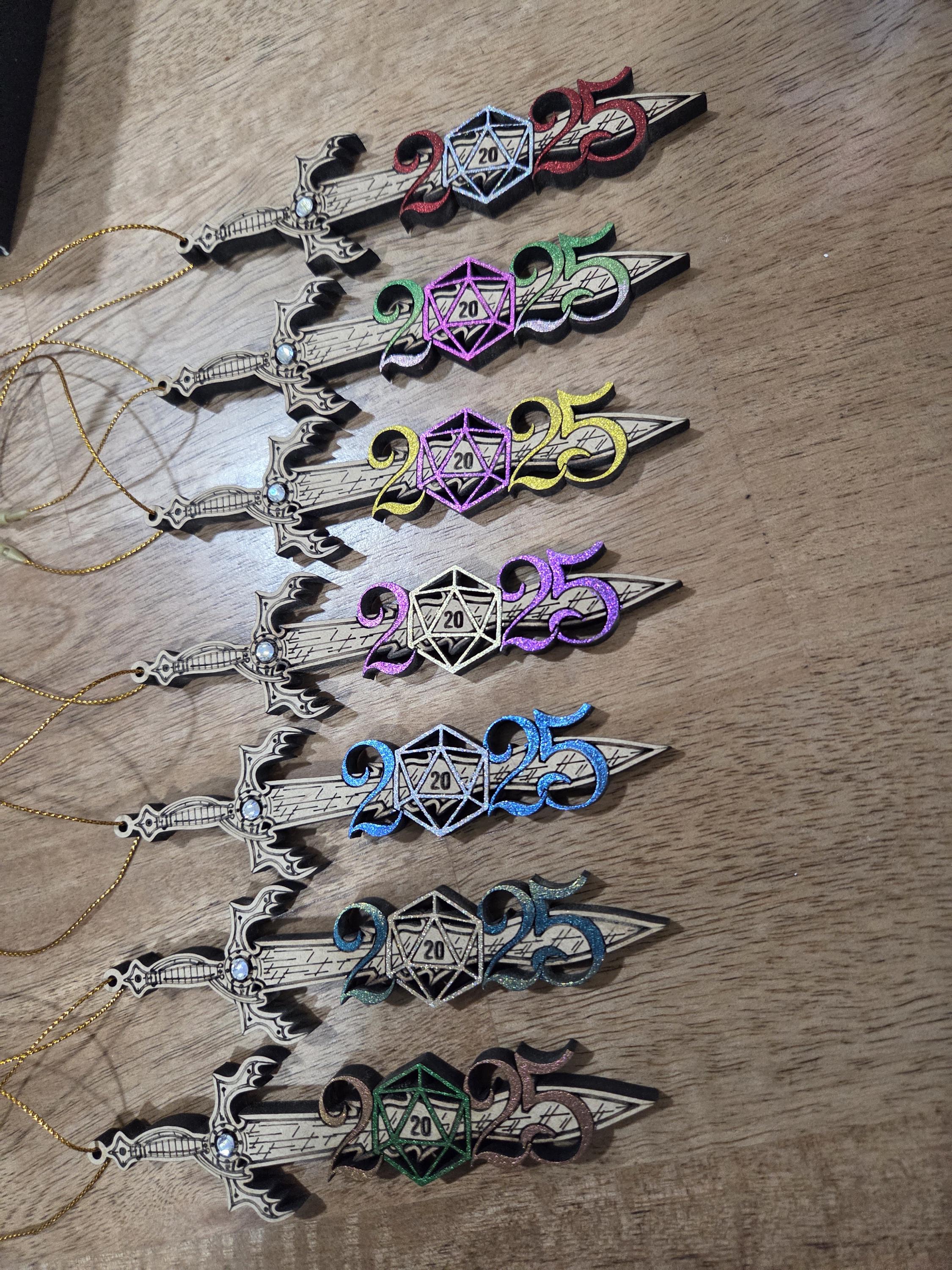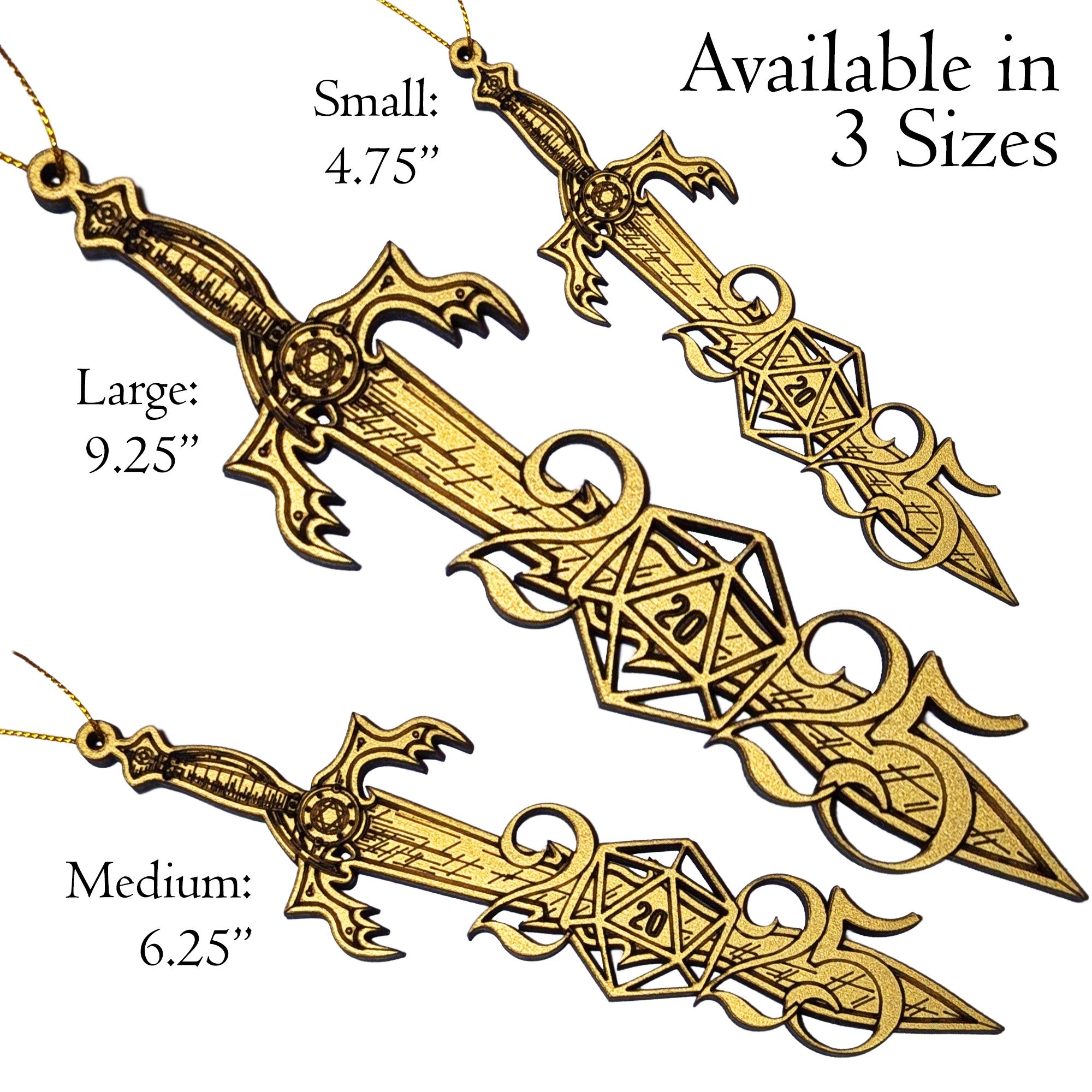 Make 2025 a year to remember with a personalised d20 gift or tree-token for your own! This ornament features a barbarian longsword piercing the year 2025 - the zero replaced with a d20 dice showing a critical hit! This D&D / d20 Dice inspired Ornament is the perfect gift for anyone (including YOU!) who loves Table-top Role Playing Games (TTRPGs) or any game system that drives your love for dice!