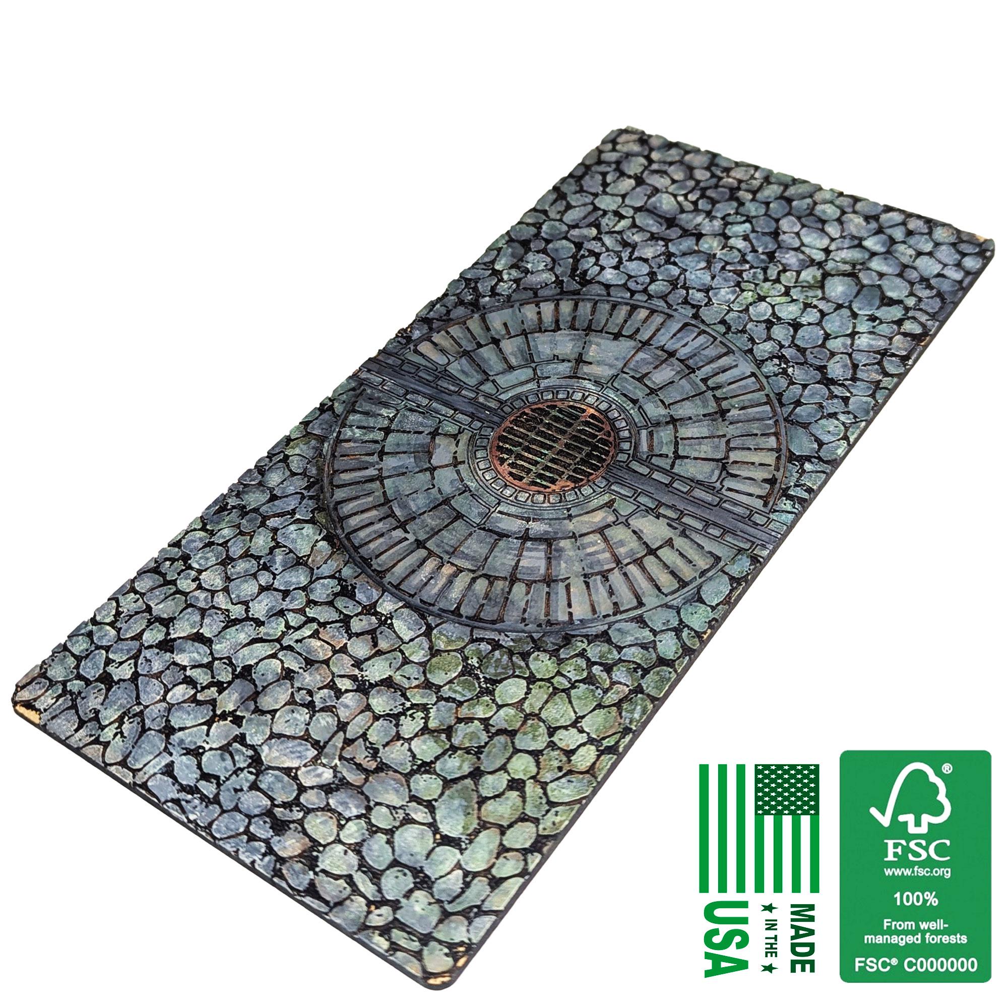 🌿 DEEP CUT laser engraved stone tile pattern with central culvert, drain and manhole cover