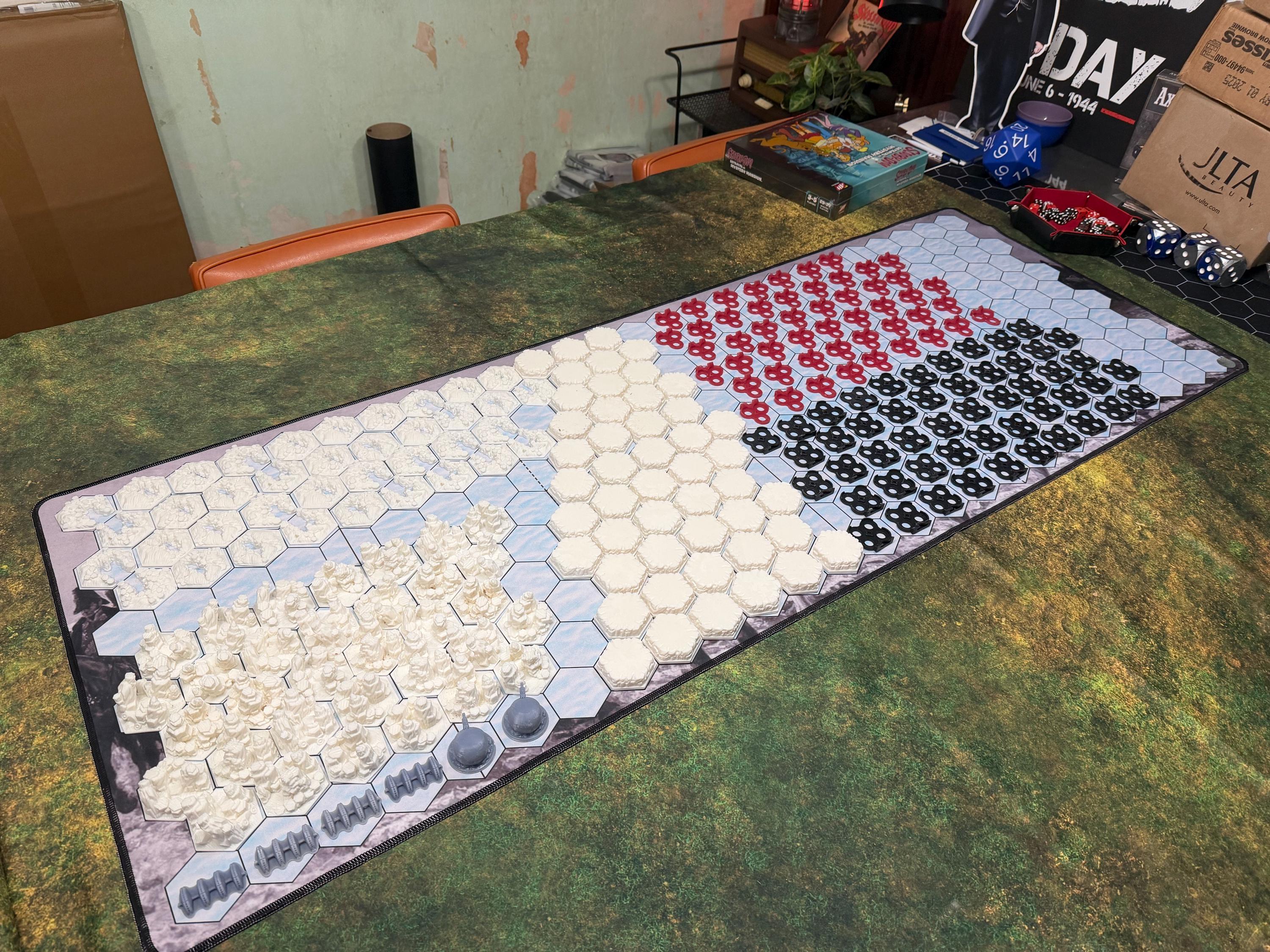 📐There are THREE HEIGHTS of hill available: 10mm (short), 15mm (Medium) and 20mm (tall). All hills sit on a 60mm hex tile base (60mm from point to point, 53mm flat to flat and 32mm on each side).