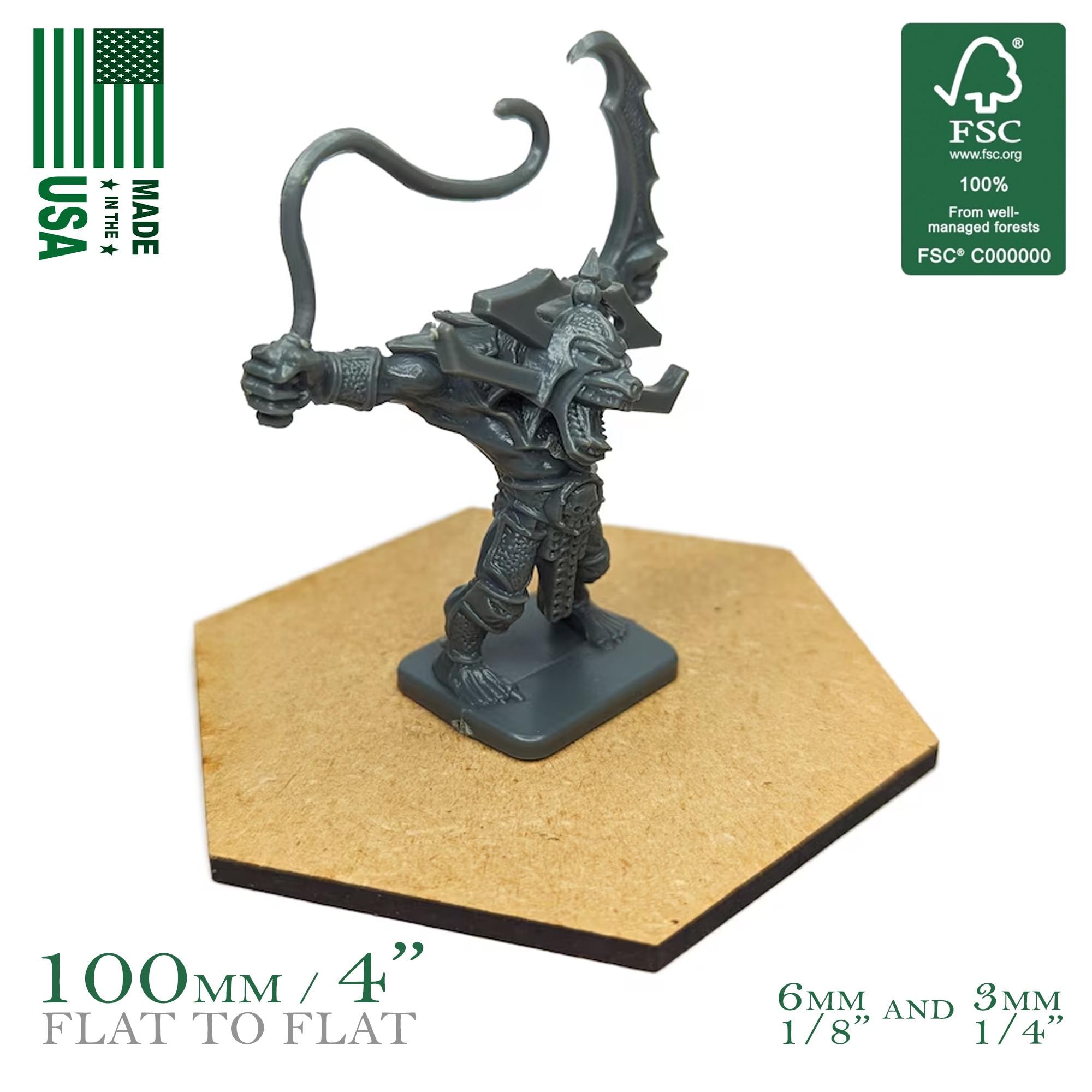 These 100mm blank MDF hex tiles can be used to create your own gaming board - or add basing and terrain elements to existing 4" or 100mm gaming systems.