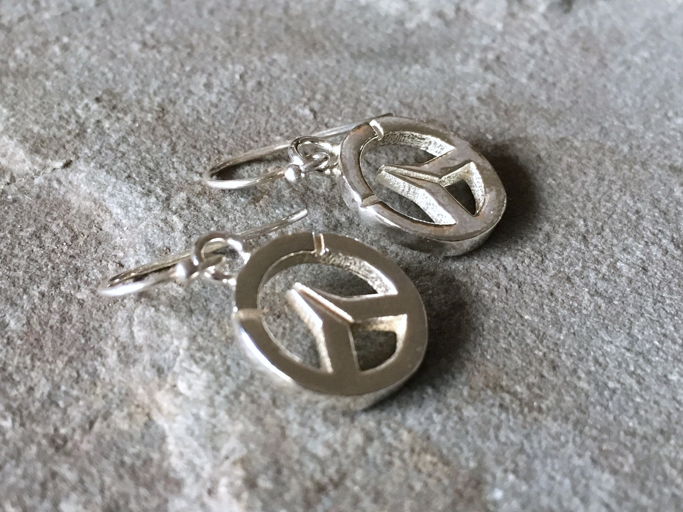 The diameter of the logo is 1.3cm and 1.5cm thick, with a 1.9cm drop from top of ear wires to bottom of charm.
