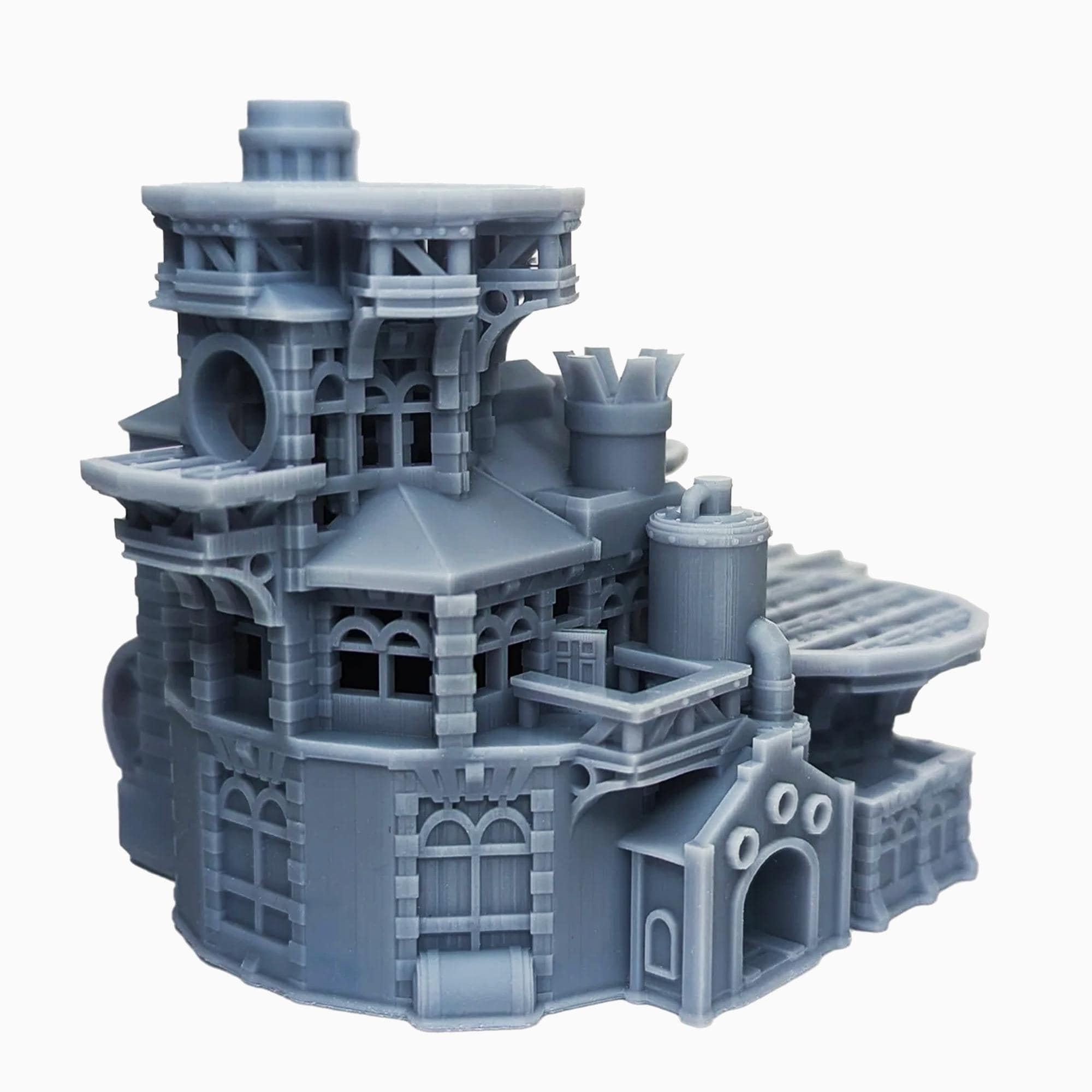 This LED enabled industrial factory makes for an EPIC centerpiece to your Scythe board - with extensions and 2 sizes to support both regular and large sides of the board. This highly detailed large scale model, which is designed to be placed in the centre of the Scythe (small) board and can hold 3 faction meeples, is printed in high-resolution GREY resin for the best detailed model we can create!